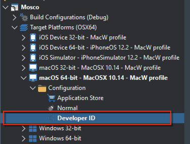 - In the Build Type combobox, select: macOS 64-bit Developer ID